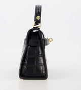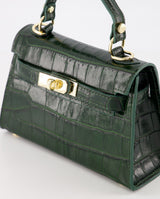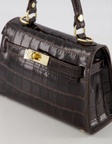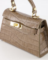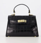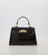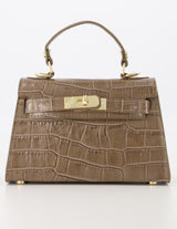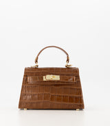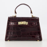 De handtas Grace is gemaakt van echt leer in een croco uitvoering met een lak accent. De tas heeft op de voorkant een draaisluiting en is afgewerkt met goudkleurige hardware. Dankzij de afneembare en verstelbare hengsel kan de Grace tas ook als crossbody gedragen worden. De tas heeft een hoofdcompartiment met aan de binnenzijde een ritsvakje.